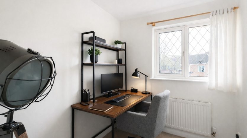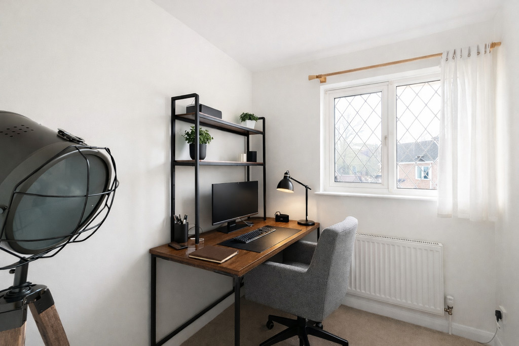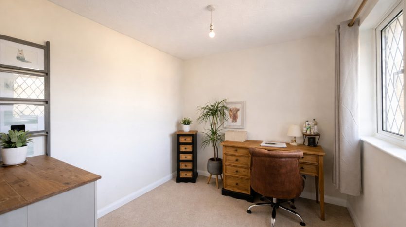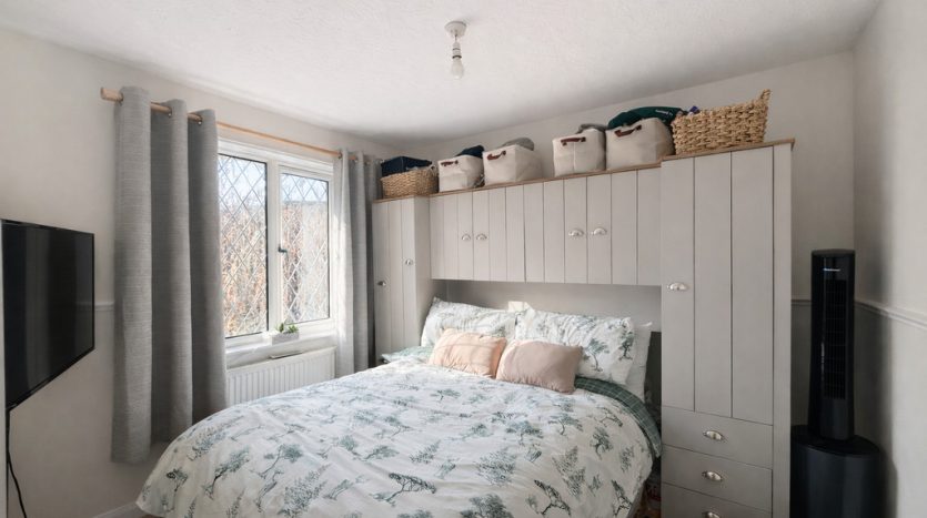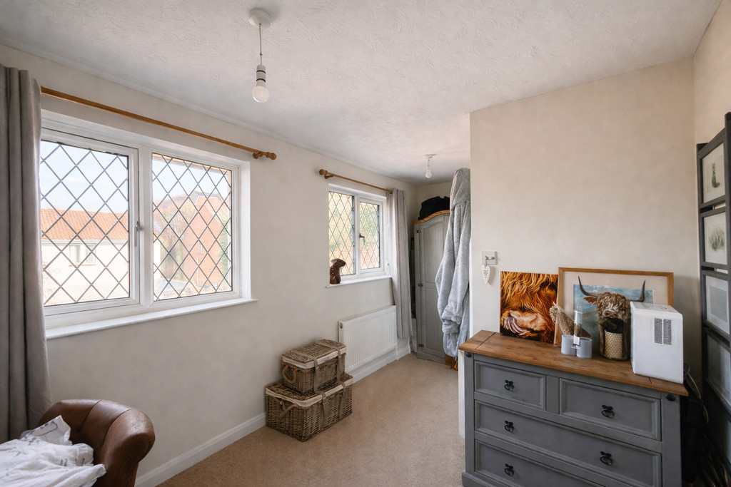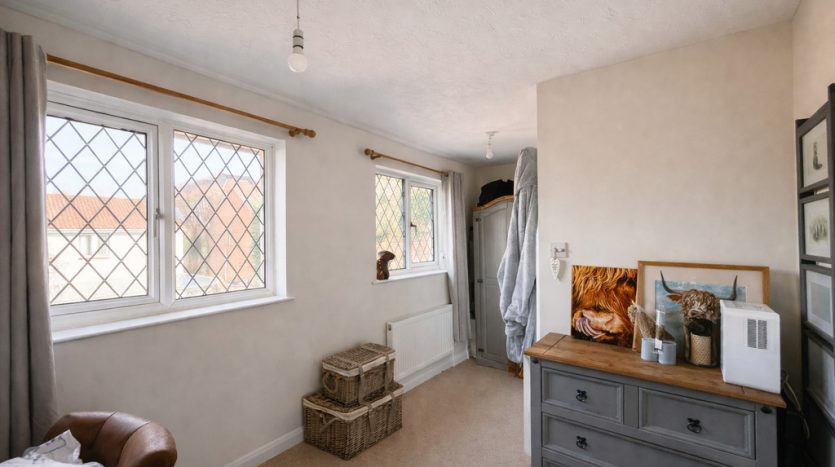 BEDROOM THREE 6′ 8" x 5′ 11" (2.03m x 1.8m) Third bedroom filled with natural light, boasting an attractive front aspect lead light UPVC double glazed window. This charming space is finished with a beige carpet underfoot and kept comfortably warm by a fitted radiator, creating a cosy and welcoming environment ideal for restful nights or a flexible guest room setup.