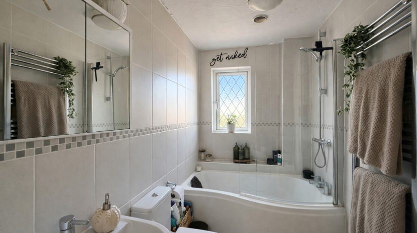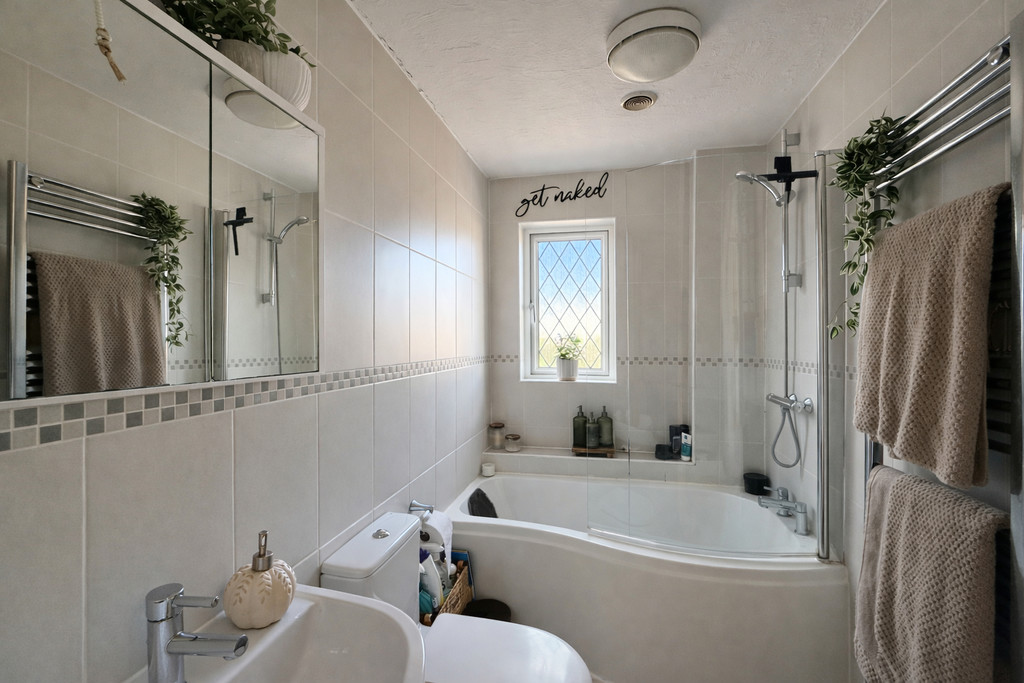 Practical features such as a spacious airing cupboard-housing the modern Vaillant combi boiler-and convenient loft access provide both storage and efficiency for everyday living. All upstairs rooms are easily accessible from the landing, ensuring a harmonious flow throughout the home. There’s also a radiator to keep the hallway cosy all year round.