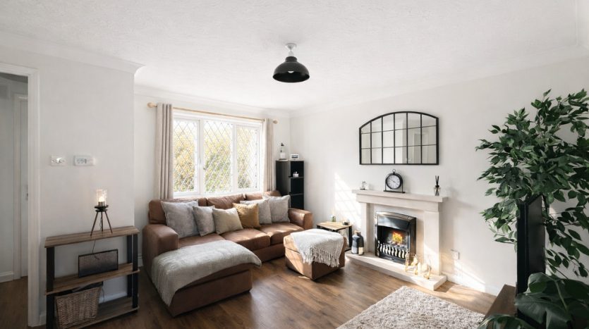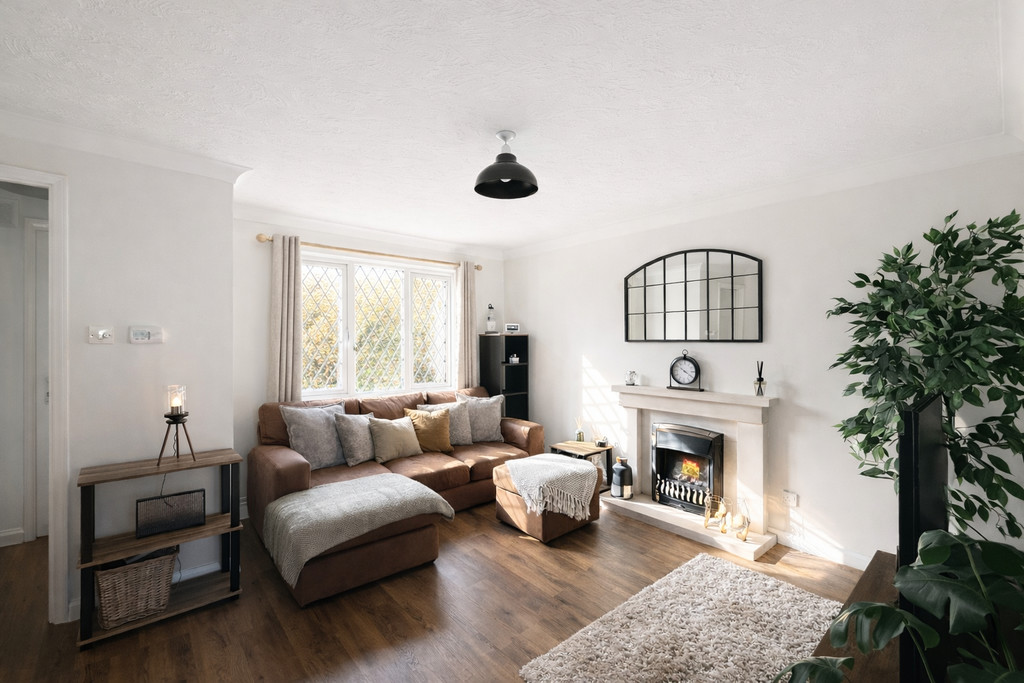 LOUNGE/DINER 22′ 11" x 14′ 5" (6.99m x 4.39m) Discover a beautifully presented property perfect for modern lifestyles, offering an exceptional open-plan lounge diner with charming front aspect lead light UPVC double-glazed windows. Natural light floods into this attractive living space, complemented by stylish dark oak wood-effect laminate flooring that adds warmth and character throughout. Enjoy cosy evenings by the feature fireplace, while two well-positioned radiators ensure year-round comfort.