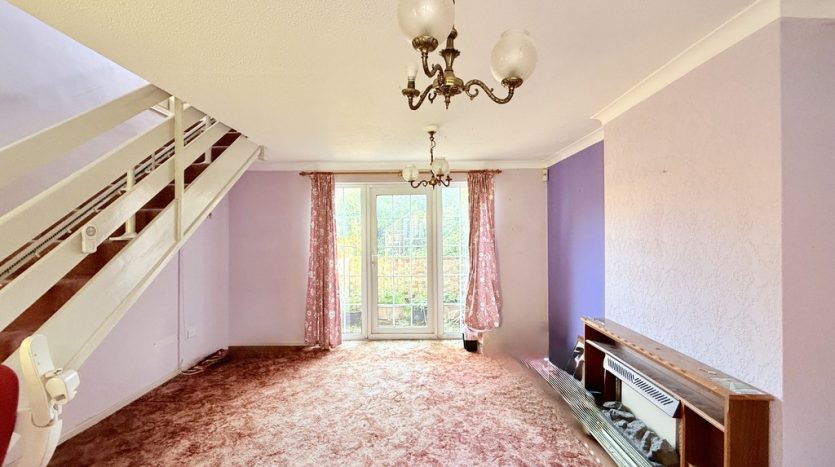 LOUNGE 15′ 2" x 13′ 3" (4.62m x 4.04m) The lounge has a window overlooking the front of the property and there are patio doors leading out ono the rear garden, all making this a light and bright room. There are stairs to the first floor and these are currently fitted with a stair lift which could be easily removed if not needed. There is a feature gas fire and an electric storage heater.