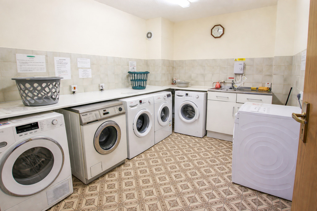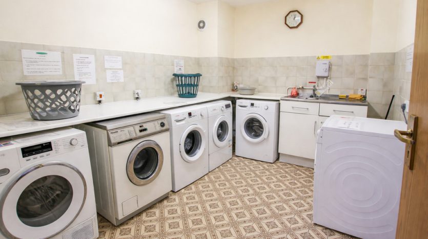 COMMUNAL LAUNDRY ROOM Residents benefit from access to a spacious communal laundry room, which offers an impressive variety of washing machines and dryers-making day-to-day chores both effortless and efficient.