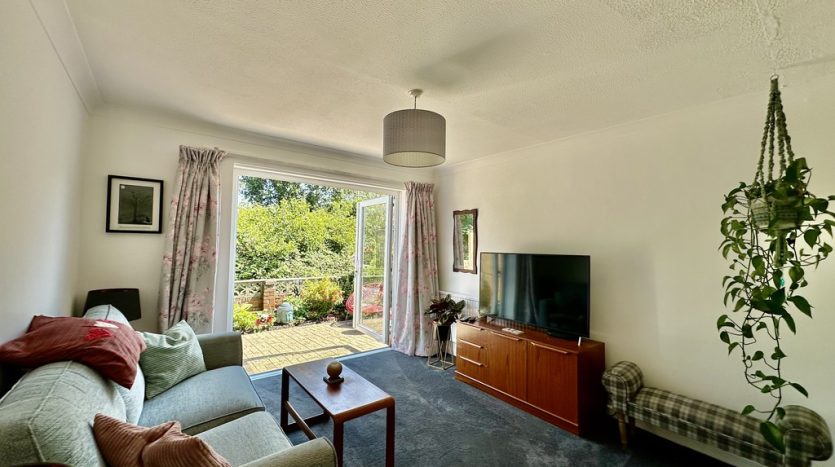 BEDROOM 2 12′ 6" x 10′ 9" (3.81m x 3.28m) This bedroom is located on the lower floor. It is a lovely light and airy room with double patio doors leading out to the courtyard garden. It is currently used as an additional living room, but would equally make a lovely bedroom or guest bedroom.