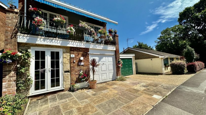 FRONT OF PROPERTY Set on a quiet street, the front of the property, is beautifully presented, and sets the scene for what you will find within. The stylish paved front provides private parking and access to the garage and to the front porch. There is also a side gate giving access to the back garden. The attractive flower beds, and the balcony with awning give a charming and lovey, yet exotic feel.