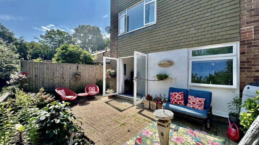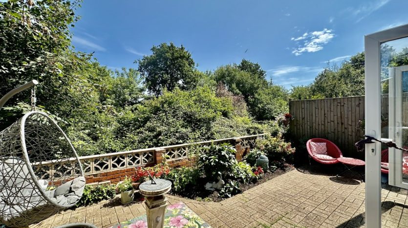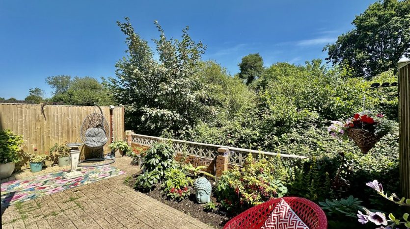 COURTYARD GARDEN The charming courtyard garden is accessed from the ground floor bedroom, and there is also side access from the front of the property. The courtyard is brick paved for easy maintenance, and has fencing each side providing privacy. there is a feature stone and brick wall and the mature trees and shrubs beyond mean you are not overlooked. This is a lovely space to sit and relax, and to entertain friends and family. There is an electric point, and an outside tap.