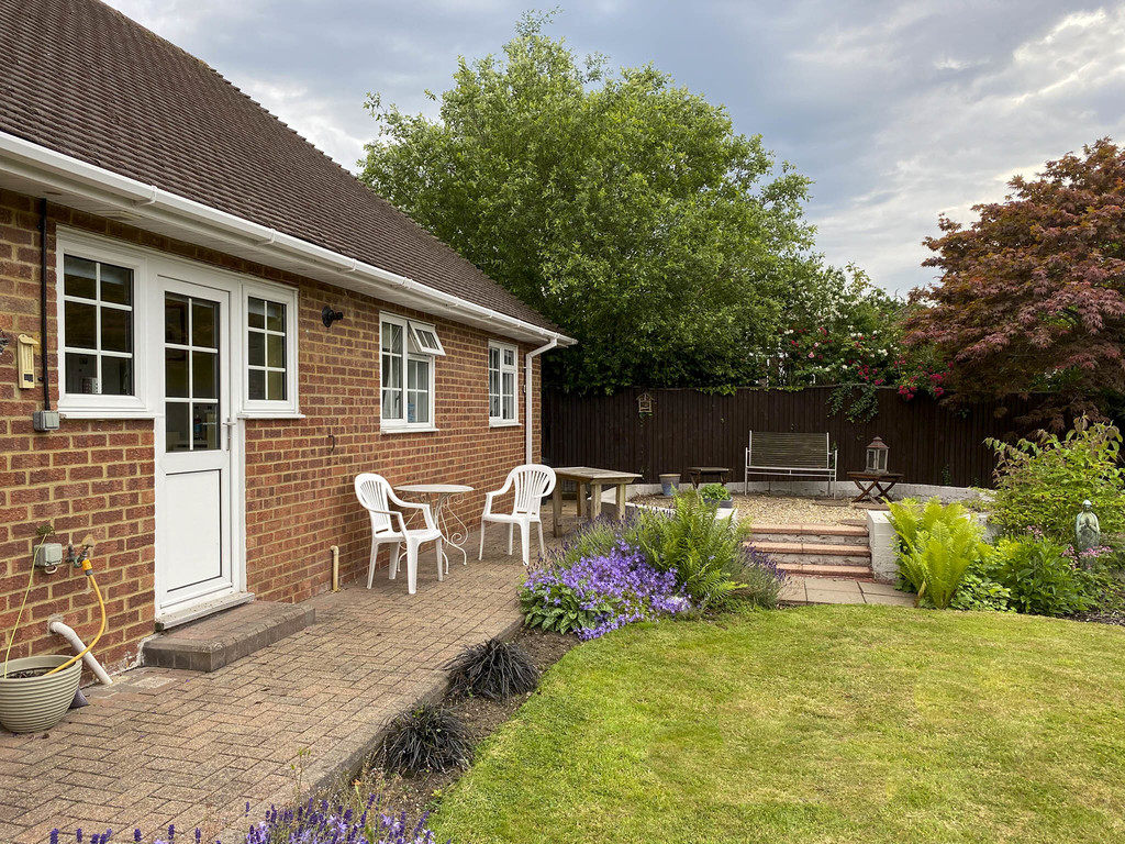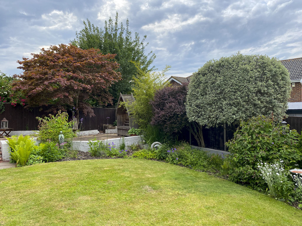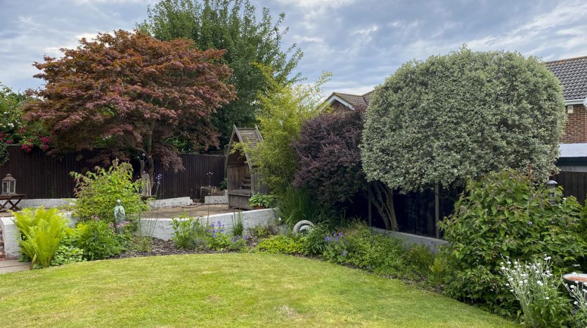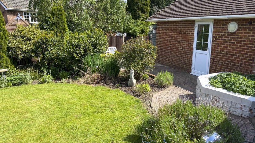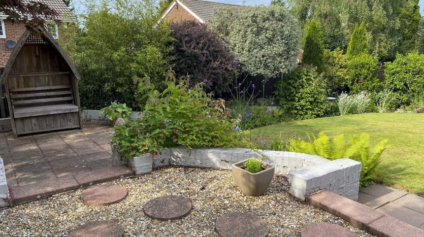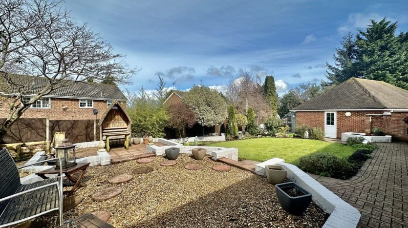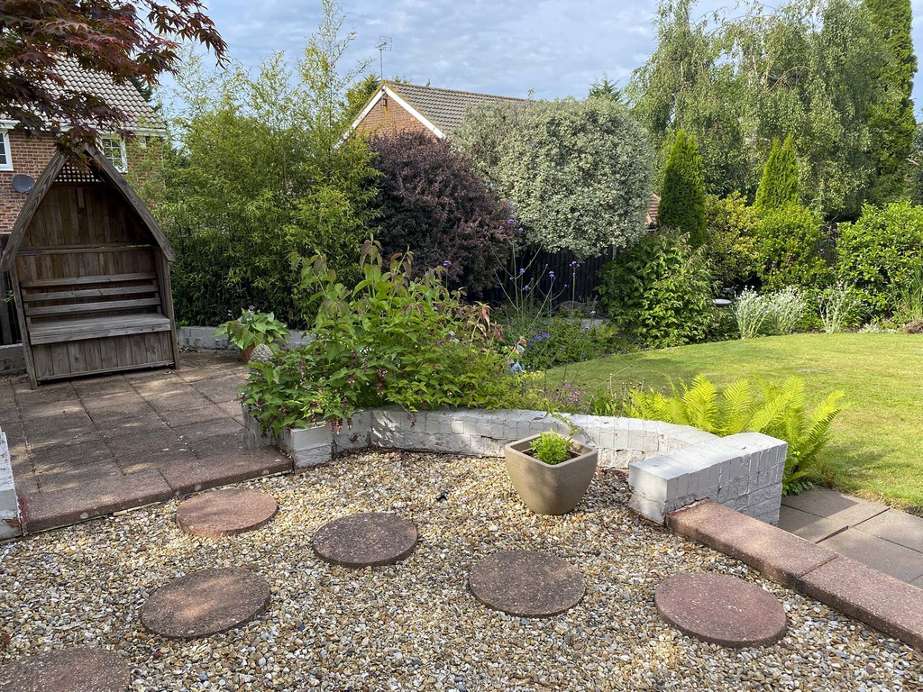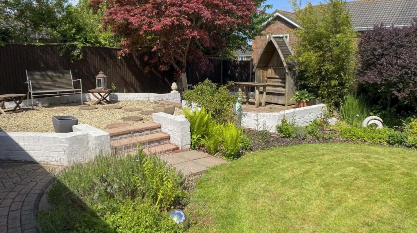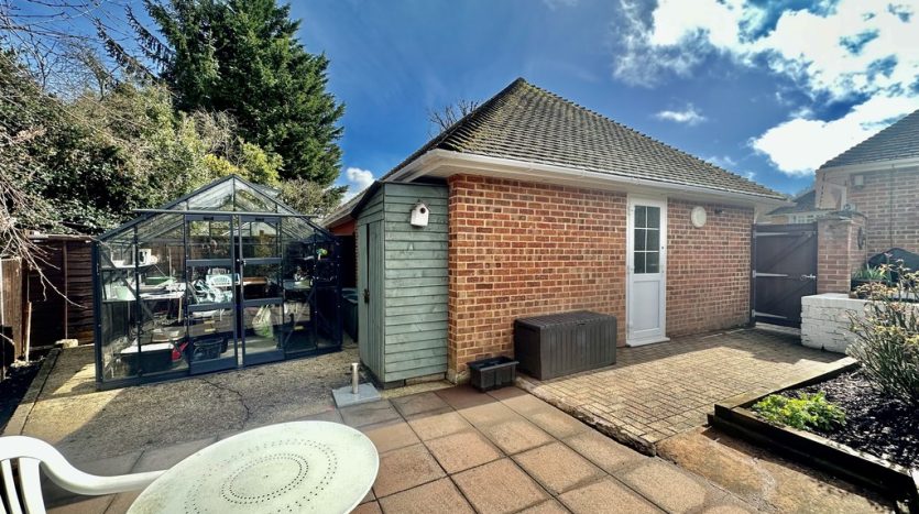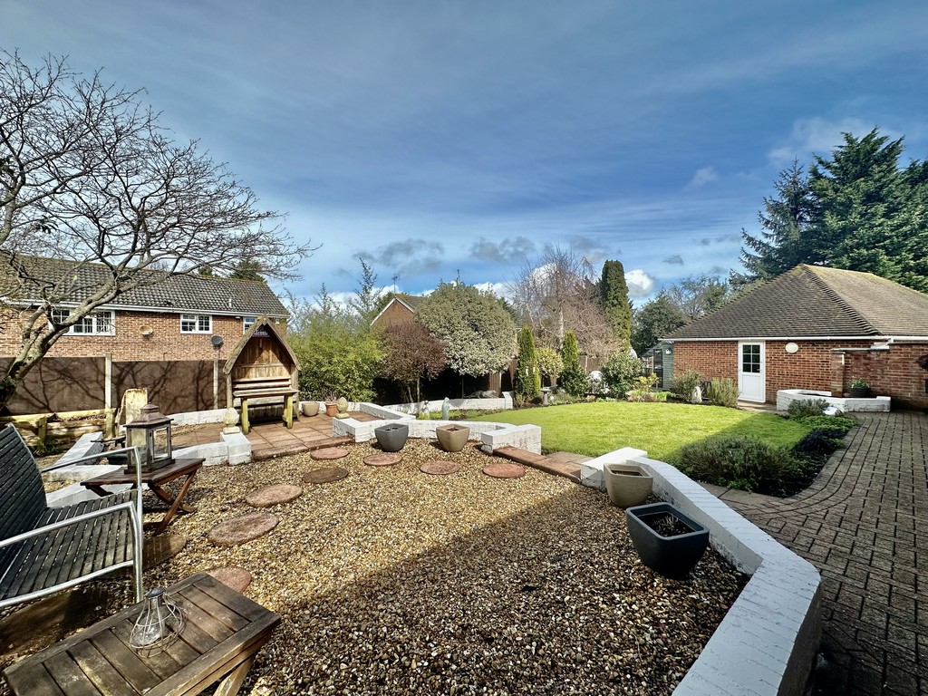 OUTSIDE REAR GARDEN The lovely rear garden has a side gate with access to the front, and there is a useful side door giving access to the double garage. Tucked away behind the garage there is a useful tool shed and a large greenhouse. There is a lawn, and brick paved paths leading to a patio seating area at the rear of the garden, and to two further raised, walled seating areas, giving a choice of places to sit and relax, and to entertain family and friends. There are mature shrubs and ornamental trees, and flower beds to add those splashes of colour. There is fencing to all sides making this a lovely private space.