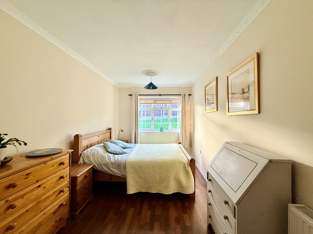 BEDROOM TWO 15′ 10" x 8′ 5" (4.83m x 2.57m) Bedroom 2 has a front aspect window overlooking the front garden, and the wooden flooring matches the hallway. There is a built in double wardrobe providing ample storage.