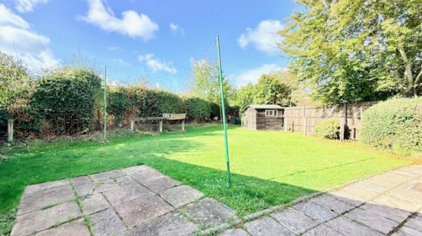 REAR GARDEN A substantial rear garden, boasting a sunny aspect and remarkable privacy. The garden is mainly laid to lawn, offering ample space for recreation or relaxation, and is further enhanced by a delightful patio area-perfect for alfresco dining or summer entertaining. Mature shrubs and established trees, combined with a mix of well-maintained fencing, create a secluded and tranquil oasis. Extra features include a garden shed, practical for storage, and convenient side access to both the front and side of the property.