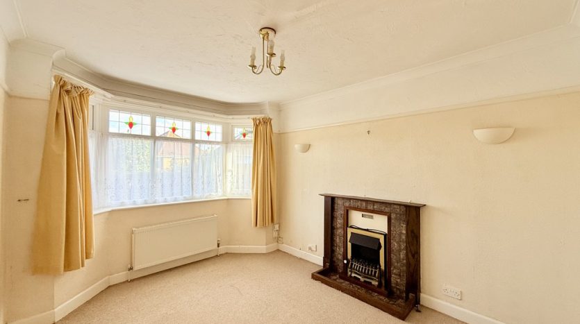 LOUNGE 12′ 4" x 9′ 9" (3.76m x 2.97m) Step inside to a welcoming lounge with a front aspect bay window that fills the room with natural light. The feature fireplace, complete with an electric fire, creates a cosy focal point-ideal for relaxing evenings at home. There is ample space for sofas and lounge furniture, making it the perfect setting for quiet nights in or entertaining friends. A cleverly designed serving hatch connects the lounge to the dining room, lending an open, sociable feel to the main living areas.