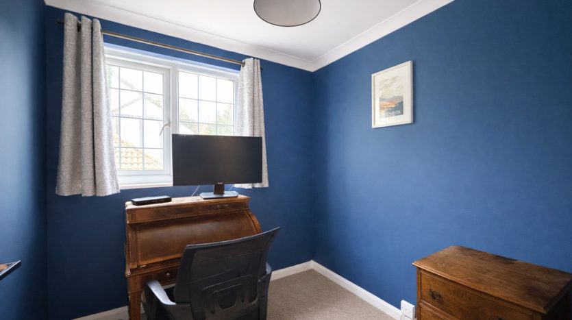 BEDROOM THREE 6′ 7" x 7′ 1" (2.01m x 2.16m) Bedroom three offers a bright and welcoming atmosphere, enhanced by a modern UPVC double-glazed window to the front aspect. Soft beige carpeting underfoot and a fitted radiator make this room perfect as a guest bedroom, child’s room or a comfortable study.