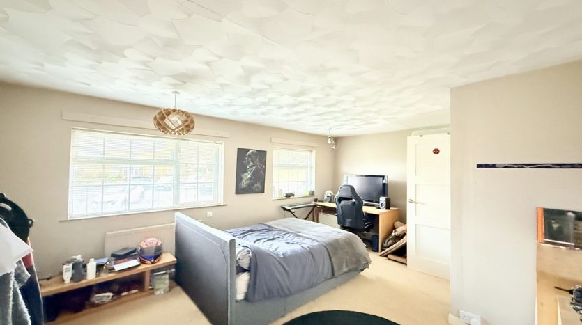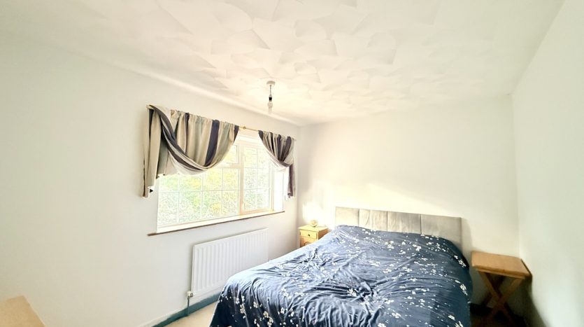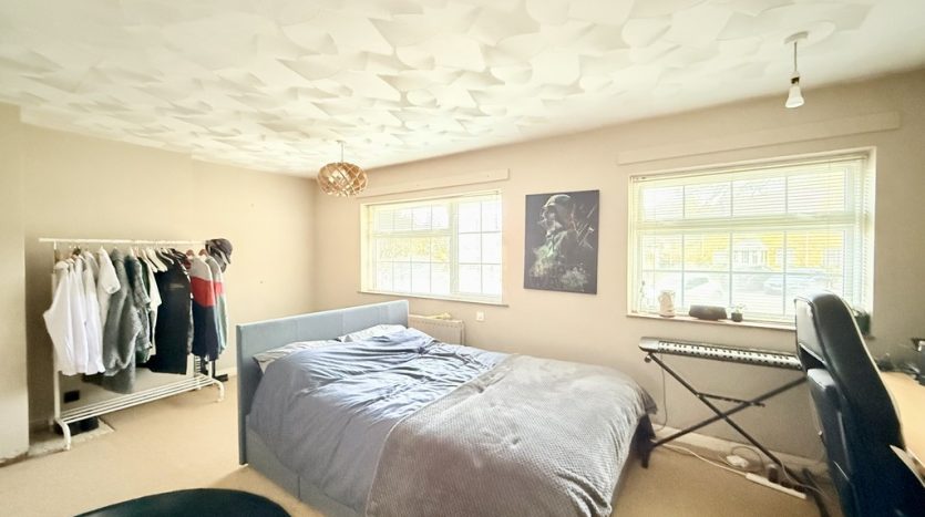 BEDROOM ONE 18′ 7" x 13′ 2" (5.66m x 4.01m) A huge bedroom, originally designed as two separate rooms. With two front aspect windows ( originally one for each of the two rooms) this space could easily be transformed back into two bedrooms with the addition of a partition wall, making this home wonderfully adaptable to changing needs. The bedroom also has a large built in cupboard and the bedroom is fitted with beige carpet.