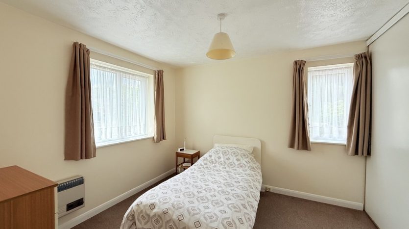 BEDROOM 12′ 9" x 10′ 0" (3.89m x 3.05m) A spacious double bedroom on the first floor. The bedroom features double aspect windows to the front and side, allowing for plenty of natural light to flood the space. Stay cozy with the wall mount Baxi Brazilla slimline 5 gas heater, perfect for chilly evenings.