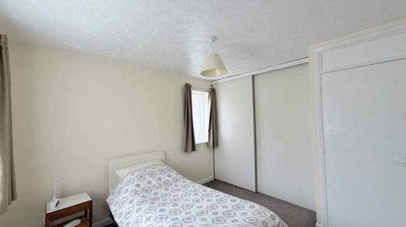 The bedroom also benefits from built-in wardrobes with sliding doors for ample storage, as well as an airing cupboard with a hot water tank.