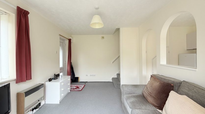 On the ground floor, you’ll find a good-sized lounge and a fitted kitchen, perfect for relaxing and entertaining. Upstairs, you’ll discover a modern bathroom, a spacious double bedroom with built-in wardrobes, and a landing with a loft hatch.