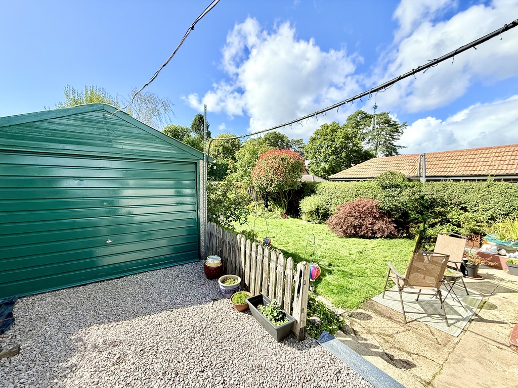 GARAGE 18′ 76" x 10′ 35" (7.42m x 3.94m) The detached garage is situated to the side of the property and is complete with an up and over door, lighting, and power-ideal for secure parking or conversion to a workshop space. A shingle driveway offers further parking and convenient access.