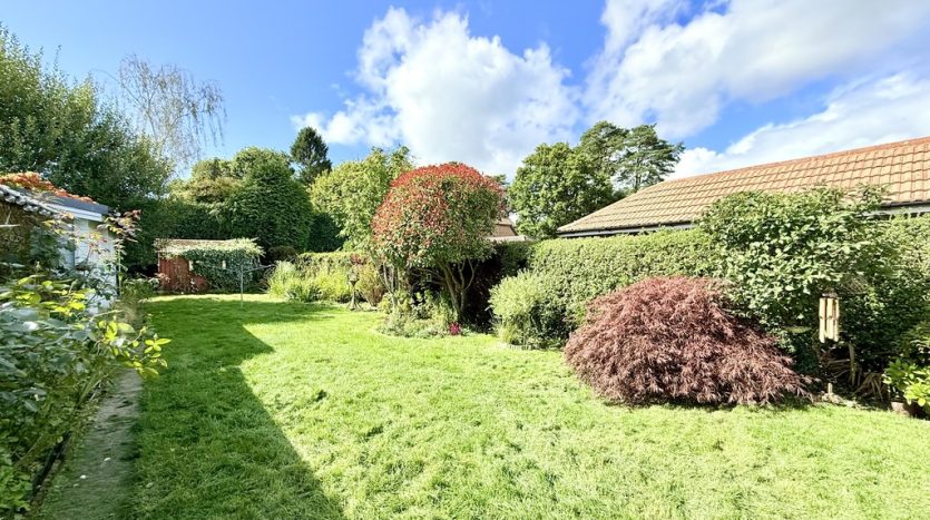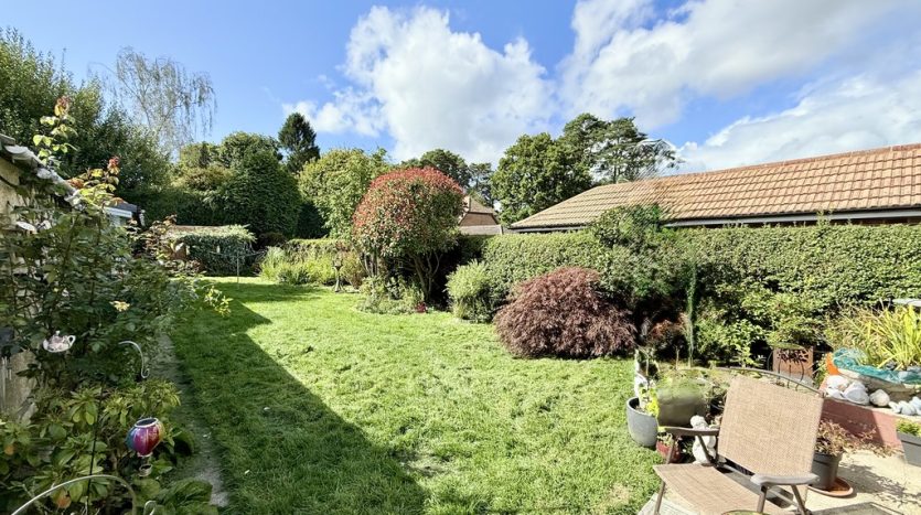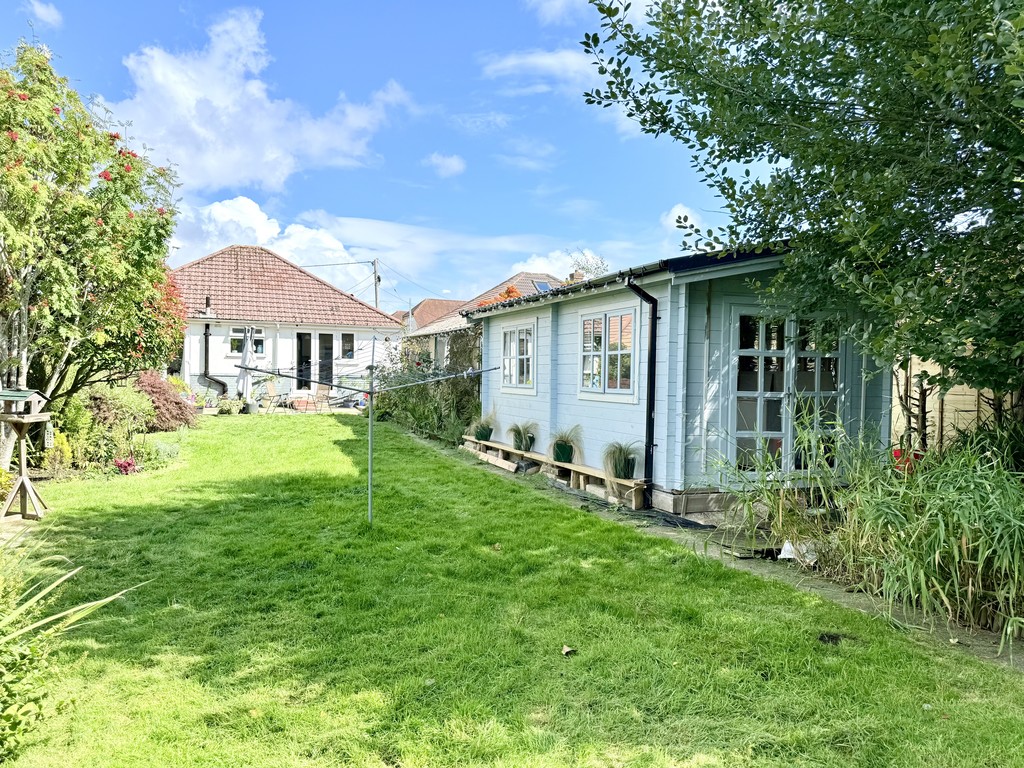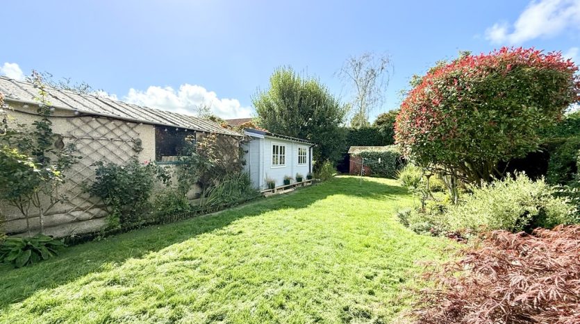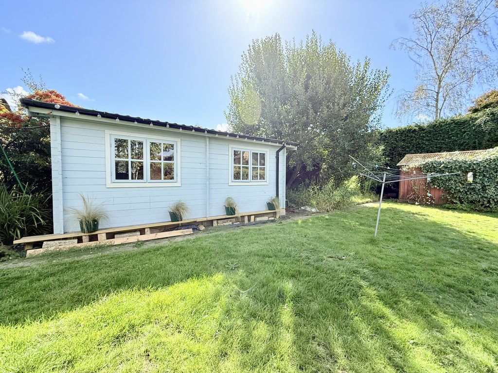 REAR GARDEN A highlight of this delightful home is the remarkable rear garden, stretching over 100 feet in length. Designed for both relaxation and entertaining, the extensive lawn is framed by mature trees and well-stocked borders with established shrubs. Hedging on both sides creates a wonderful sense of seclusion. Adjacent to the house, a generous patio is perfect for alfresco dining or morning coffee. There is a shed at the end of the garden, in addition to the versatile summerhouse/annexe. Additional thoughtful features include a dedicated utility area with space for bins and an oustide tap. There are wrought iron gates for convenient side access.