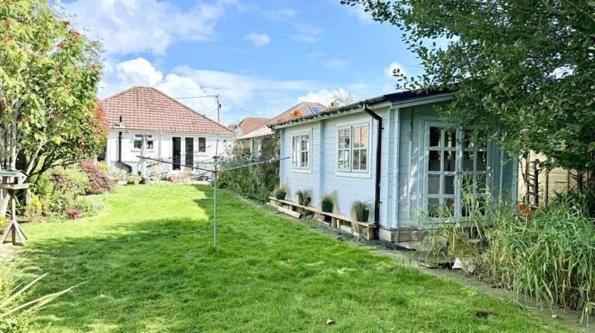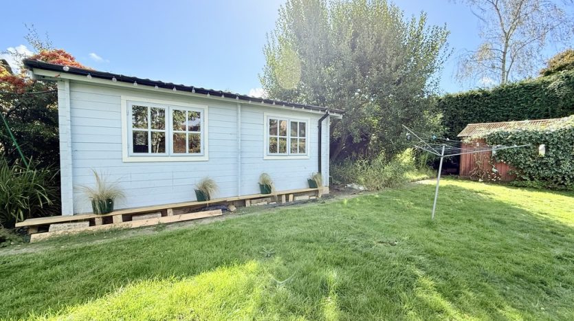 ANNEX /SUMMER HOUSE 19′ 68" x 13′ 12" (7.52m x 4.27m) A standout features is an impressive annexe within the garden, measuring a generous 6m x 4m. Currently part-furbished with insulation and boarding works already underway, this versatile additional space benefits from power . With a pitch roof, front glazed door, an additional full-height window, and two double windows to the side, the annexe is flooded with light and would be perfect as a home office, creative studio, or inviting guest suite. it has electricity and internet connected, Whether you’re seeking a quiet retreat, professional workspace, or somewhere for friends and family to stay, this summerhouse ticks every box.